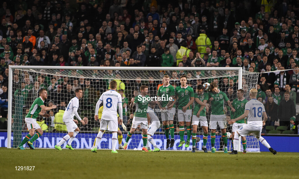 28 March 2017; Hordur Bjorgvin Magnusson of Iceland shoots to score his side's first goal during the International Friendly match between the Republic of Ireland and Iceland at the Aviva Stadium in Dublin. Photo by David Maher/Sportsfile