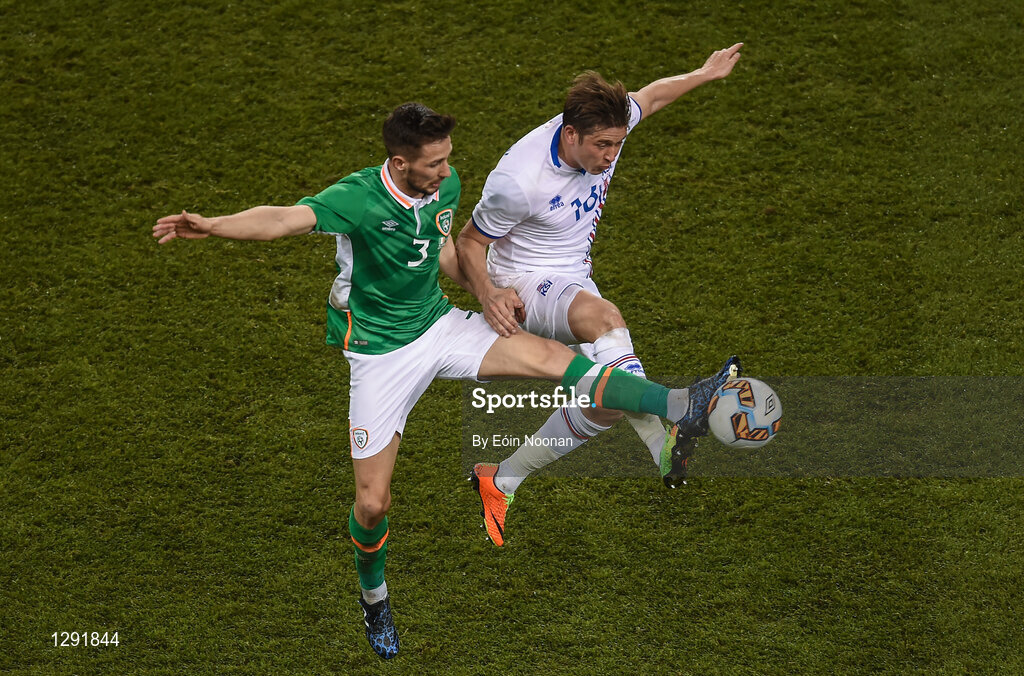 28 March 2017; Conor Hourihane of Republic of Ireland in action against Olafur Ingi Skulason of Iceland during the International Friendly match between the Republic of Ireland and Iceland at the Aviva Stadium in Dublin. Photo by Eóin Noonan/Sportsfile