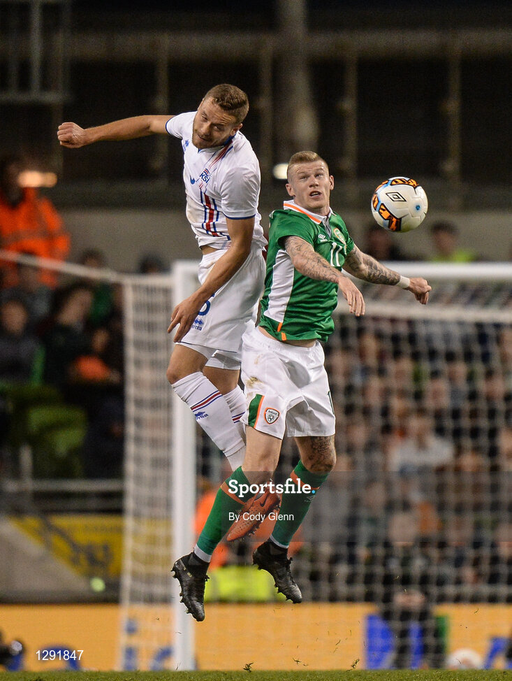 28 March 2017; James McClean of Republic of Ireland in action against Sverrir Ingi Ingason of Iceland during the International Friendly match between the Republic of Ireland and Iceland at the Aviva Stadium in Dublin. Photo by Cody Glenn/Sportsfile