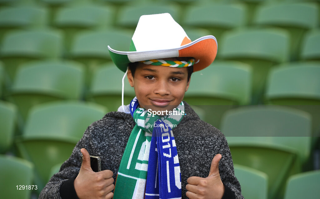 28 March 2017; Republic of Ireland supporter Pharrell Kareem, age 10, from Knockline, Dublin, ahead of the International Friendly match between the Republic of Ireland and Iceland at the Aviva Stadium in Dublin. Photo by Cody Glenn/Sportsfile