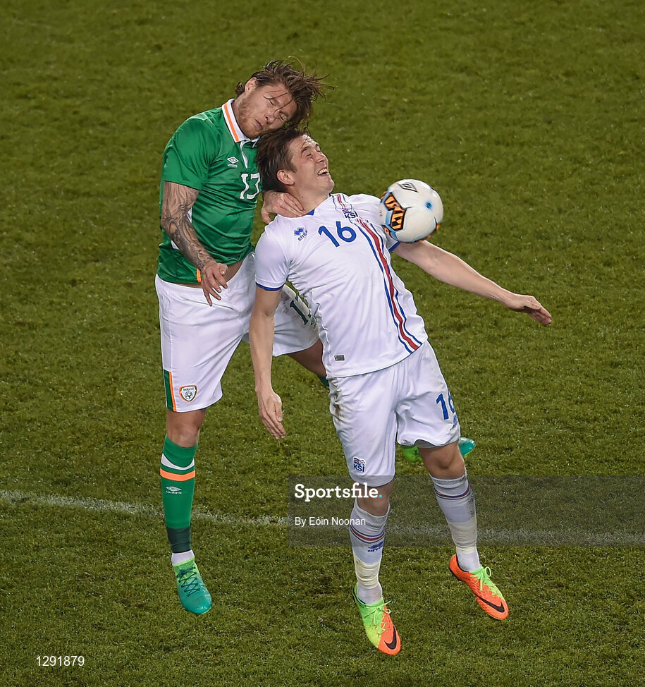 28 March 2017; Jeff Hendrick of Republic of Ireland in action against Olafur Ingi Skulason of Iceland during the International Friendly match between the Republic of Ireland and Iceland at the Aviva Stadium in Dublin. Photo by Eóin Noonan/Sportsfile