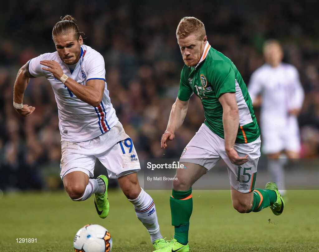 28 March 2017; Daryl Horgan of Republic of Ireland in action against Olafur Ingi Skulsaon of Iceland during the International Friendly match between the Republic of Ireland and Iceland at the Aviva Stadium in Dublin. Photo by Matt Browne/Sportsfile