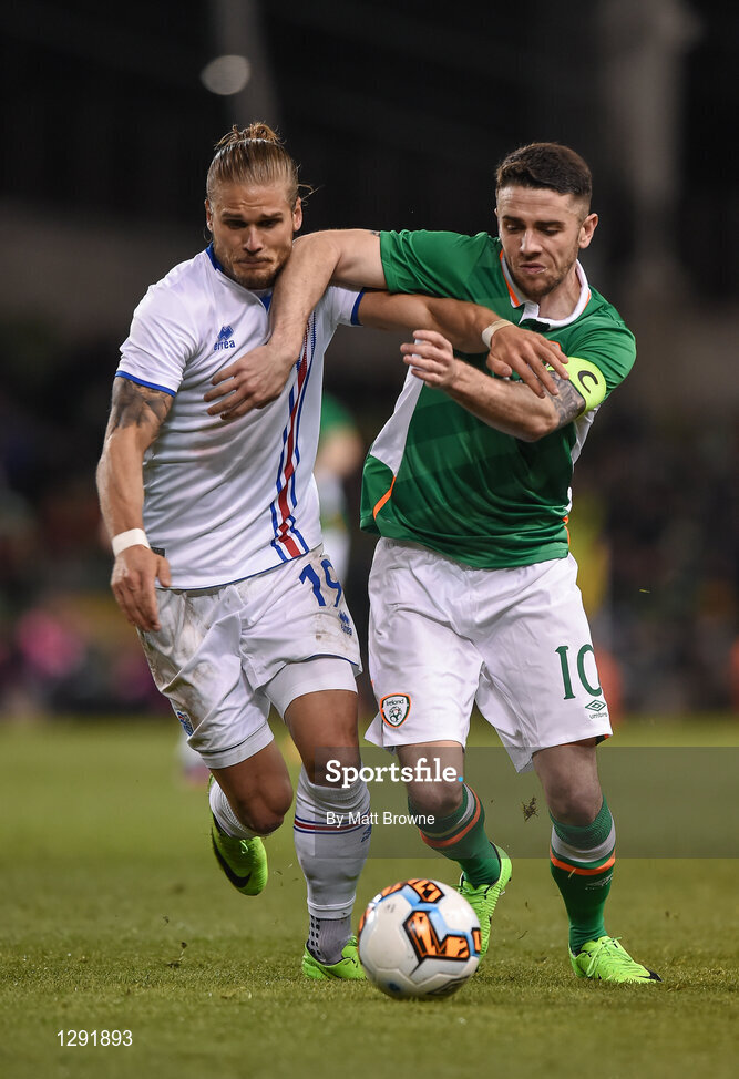 28 March 2017; Robbie Brady of Republic of Ireland in action against Rurik Gislason of Iceland during the International Friendly match between the Republic of Ireland and Iceland at the Aviva Stadium in Dublin. Photo by Matt Browne/Sportsfile