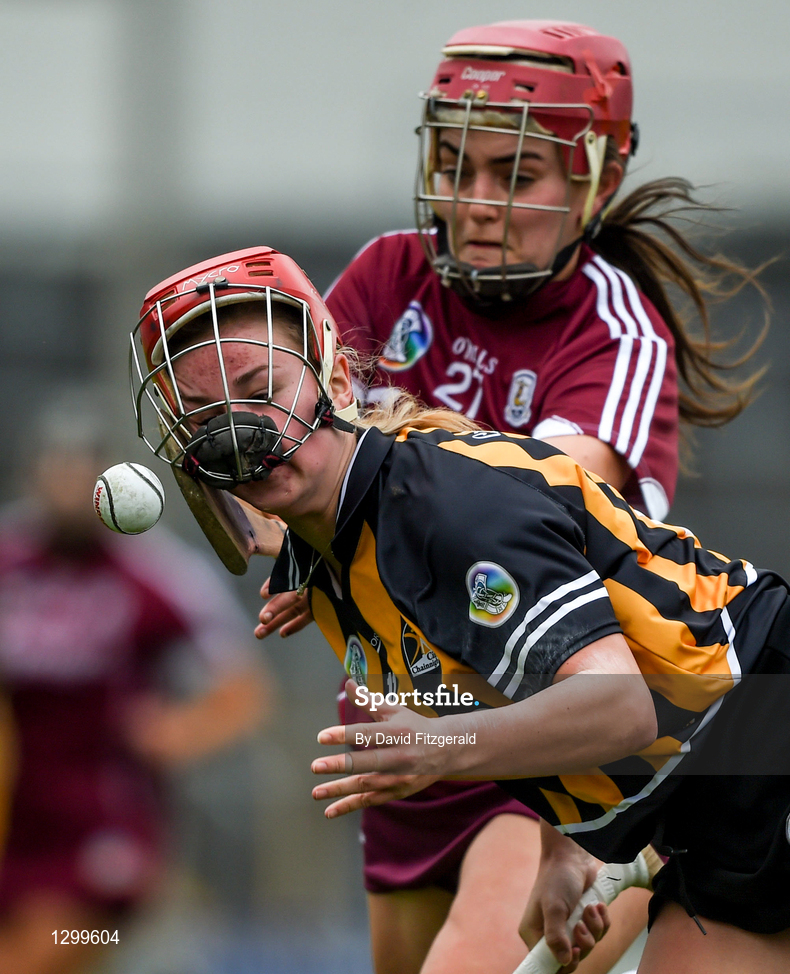 9 April 2017; Grace Walsh of Kilkenny in action against Orlaith McGrath of Galway during the Littlewoods National Camogie League semi-final match between Galway and Kilkenny at Semple Stadium in Thurles, Co. Tipperary. Photo by David Fitzgerald/Sportsfile