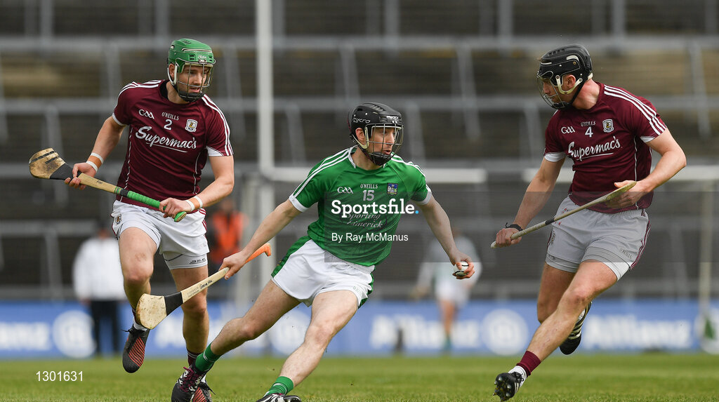 16 April 2017; Graeme Mucahy of Limerick in action against Aidan Harte, right, and Adrian Tuohy of Galway during the Allianz Hurling League Division 1 Semi-Final match between Limerick and Galway at the Gaelic Grounds in Limerick. Photo by Ray McManus/Sportsfile