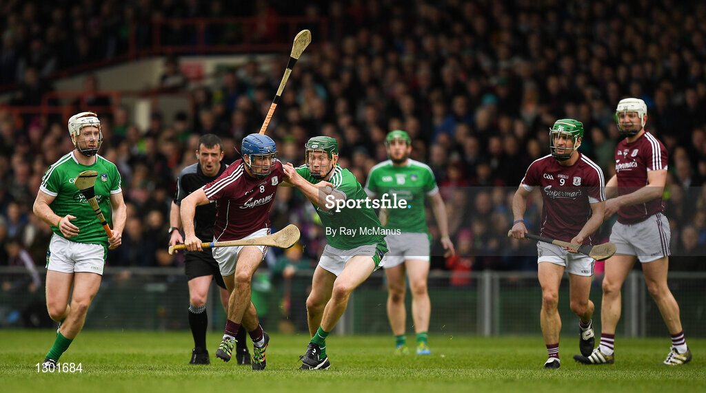 16 April 2017; Johnny Coen of Galway in action against William O’Donoghue of Limerick during the Allianz Hurling League Division 1 Semi-Final match between Limerick and Galway at the Gaelic Grounds in Limerick. Photo by Ray McManus/Sportsfile