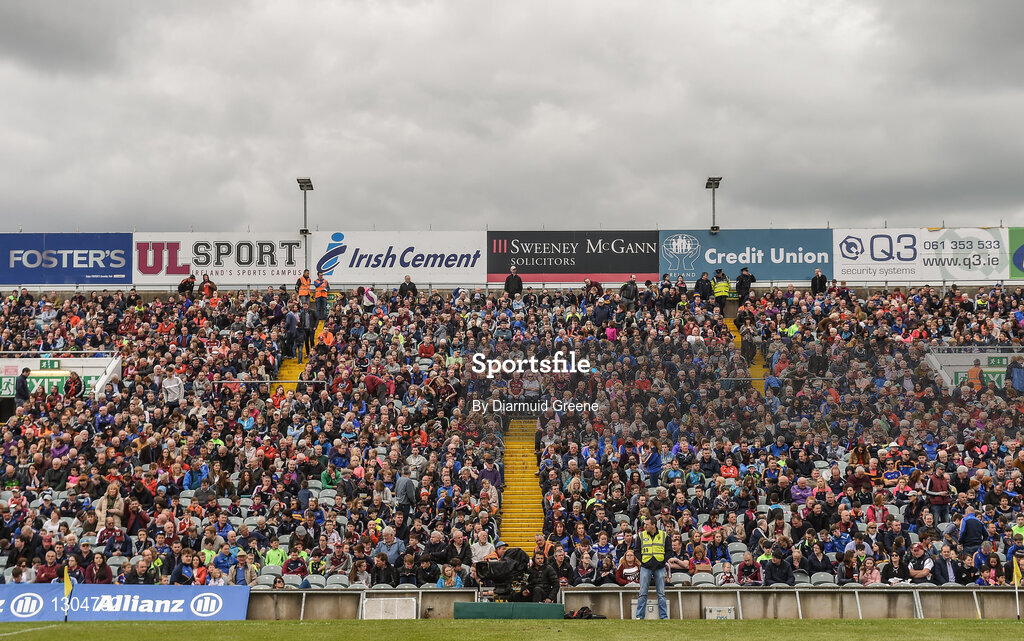 23 April 2017; Spectators in position at the open stand ahead of the Allianz Hurling League Division 1 Final match between Galway and Tipperary at the Gaelic Grounds in Limerick. Photo by Diarmuid Greene/Sportsfile