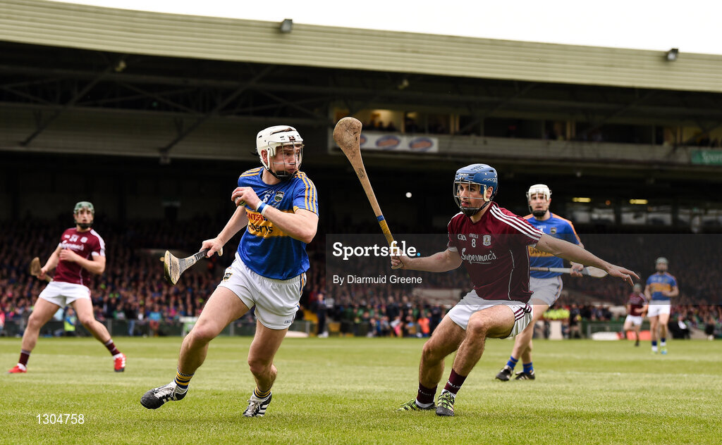 23 April 2017; Brendan Maher of Tipperary in action against Johnny Coen of Galway during the Allianz Hurling League Division 1 Final match between Galway and Tipperary at the Gaelic Grounds in Limerick. Photo by Diarmuid Greene/Sportsfile