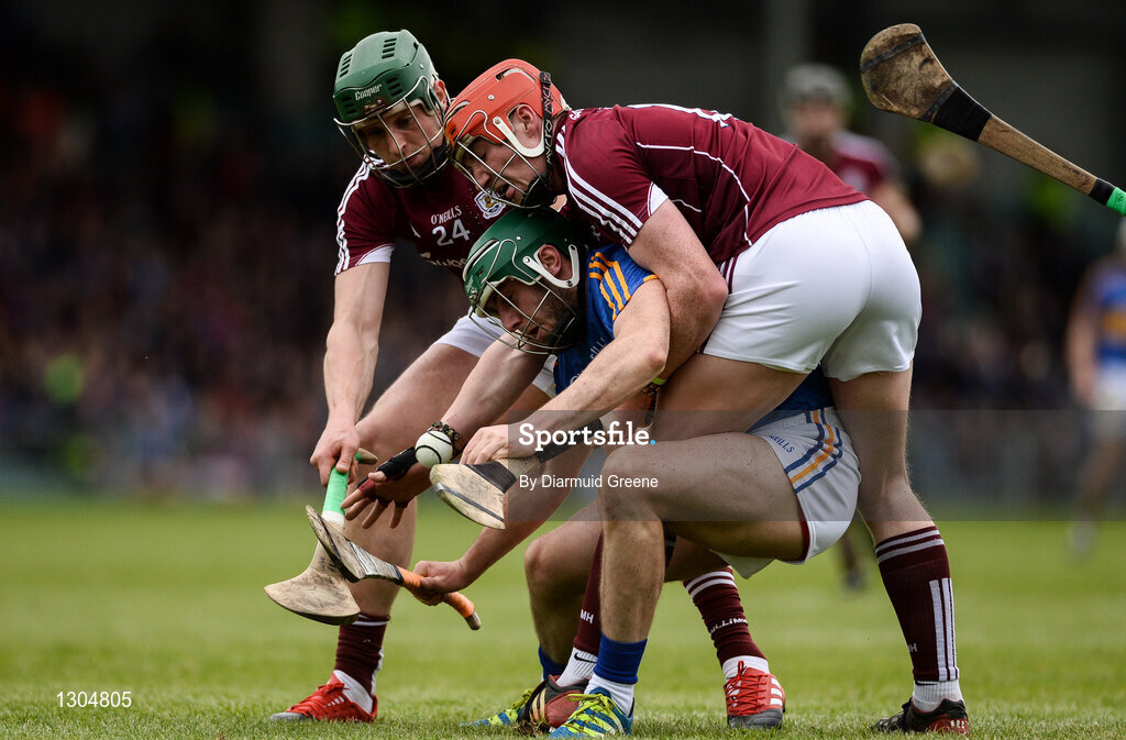 23 April 2017; Cathal Barrett of Tipperary in action against Niall Burke, left, and Conor Whelan of Galway during the Allianz Hurling League Division 1 Final match between Galway and Tipperary at the Gaelic Grounds in Limerick. Photo by Diarmuid Greene/Sportsfile
