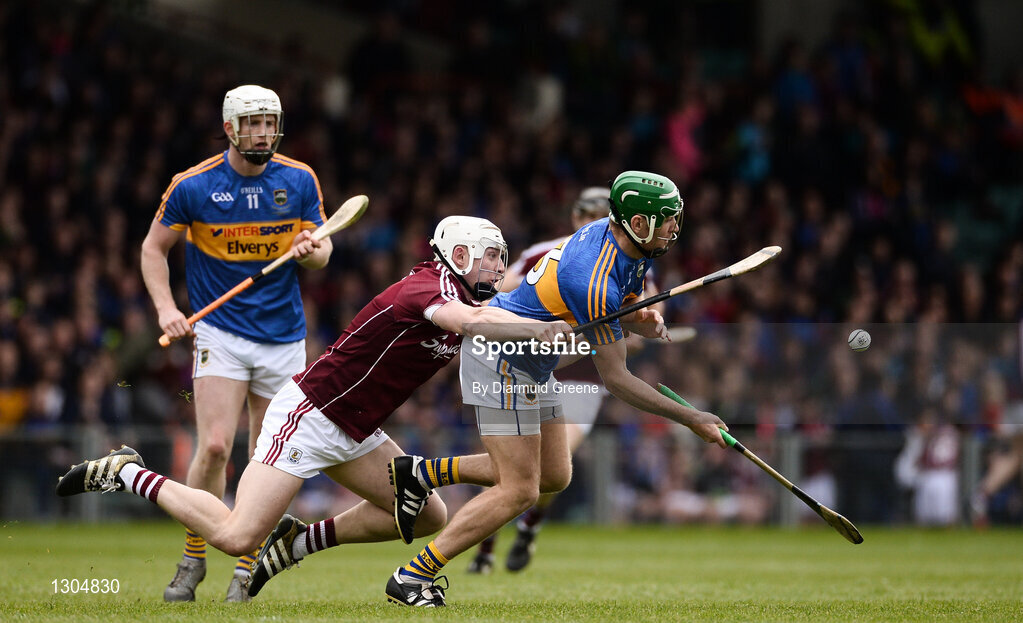 23 April 2017; Noel McGrath of Tipperary in action against Joe Canning of Galway during the Allianz Hurling League Division 1 Final match between Galway and Tipperary at the Gaelic Grounds in Limerick. Photo by Diarmuid Greene/Sportsfile