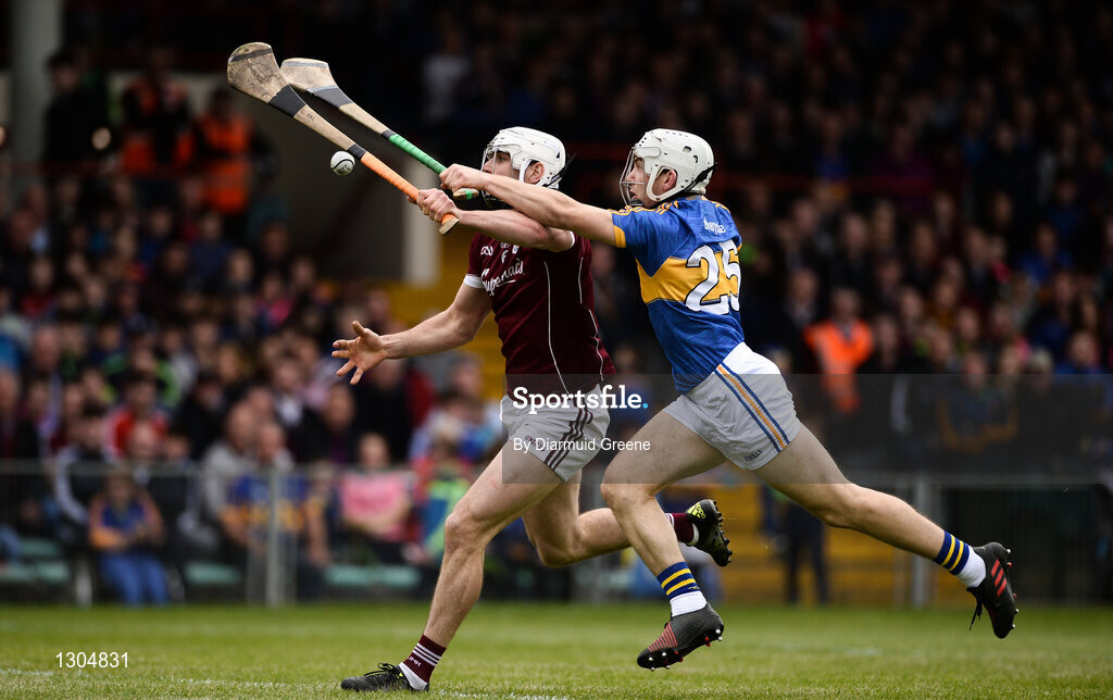 23 April 2017; Gearóid McInerney of Galway in action against Niall O'Meara of Tipperary during the Allianz Hurling League Division 1 Final match between Galway and Tipperary at the Gaelic Grounds in Limerick. Photo by Diarmuid Greene/Sportsfile