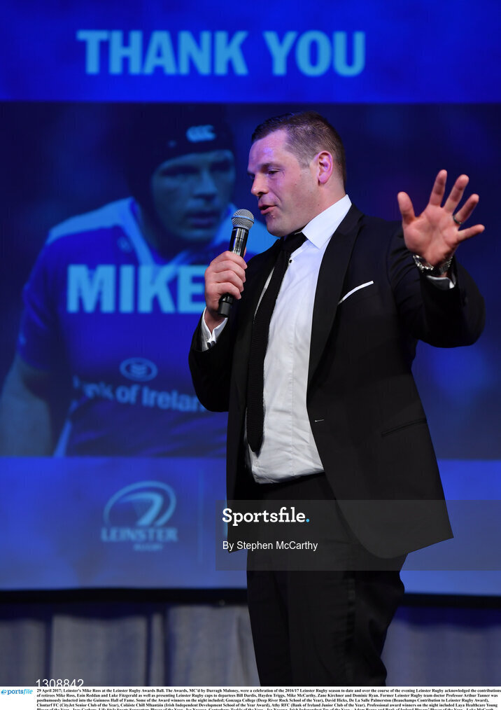 29 April 2017; Leinster's Mike Ross at the Leinster Rugby Awards Ball. The Awards, MC’d by Darragh Maloney, were a celebration of the 2016/17 Leinster Rugby season to date and over the course of the evening Leinster Rugby acknowledged the contributions of retirees Mike Ross, Eóin Reddan and Luke Fitzgerald as well as presenting Leinster Rugby caps to departees Bill Dardis, Hayden Triggs, Mike McCarthy, Zane Kirchner and Dominic Ryan. Former Leinster Rugby team doctor Professor Arthur Tanner was posthumously inducted into the Guinness Hall of Fame. Some of the Award winners on the night included; Gonzaga College (Deep River Rock School of the Year), David Hicks, De La Salle Palmerston (Beauchamps Contribution to Leinster Rugby Award), Clontarf FC (CityJet Senior Club of the Year), Coláiste Chill Mhantáin (Irish Independent Development School of the Year Award), Athy RFC (Bank of Ireland Junior Club of the Year). Professional award winners on the night included Laya Healthcare Young Player of the Year - Joey Carbery, Life Style Sports Supporters Player of the Year - Isa Nacewa, Canterbury Tackle of the Year – Isa Nacewa, Irish Independnet Try of the Year – Adam Byrne and Bank of Ireland Players’ Player of the Year – Luke McGrath. Clayton Hotel, Burlington Road, Dublin 4. Photo by Stephen McCarthy/Sportsfile