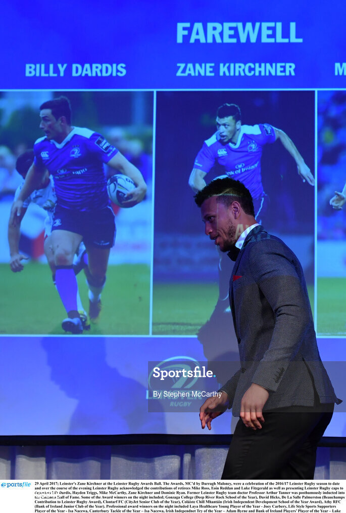 29 April 2017; Leinster's Zane Kirchner at the Leinster Rugby Awards Ball. The Awards, MC’d by Darragh Maloney, were a celebration of the 2016/17 Leinster Rugby season to date and over the course of the evening Leinster Rugby acknowledged the contributions of retirees Mike Ross, Eóin Reddan and Luke Fitzgerald as well as presenting Leinster Rugby caps to departees Bill Dardis, Hayden Triggs, Mike McCarthy, Zane Kirchner and Dominic Ryan. Former Leinster Rugby team doctor Professor Arthur Tanner was posthumously inducted into the Guinness Hall of Fame. Some of the Award winners on the night included; Gonzaga College (Deep River Rock School of the Year), David Hicks, De La Salle Palmerston (Beauchamps Contribution to Leinster Rugby Award), Clontarf FC (CityJet Senior Club of the Year), Coláiste Chill Mhantáin (Irish Independent Development School of the Year Award), Athy RFC (Bank of Ireland Junior Club of the Year). Professional award winners on the night included Laya Healthcare Young Player of the Year - Joey Carbery, Life Style Sports Supporters Player of the Year - Isa Nacewa, Canterbury Tackle of the Year – Isa Nacewa, Irish Independnet Try of the Year – Adam Byrne and Bank of Ireland Players’ Player of the Year – Luke McGrath. Clayton Hotel, Burlington Road, Dublin 4. Photo by Stephen McCarthy/Sportsfile