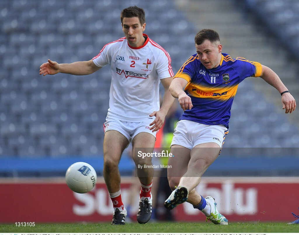 8 April 2017; Kevin O'Halloran of Tipperary in action against Padraig Rath of Louth during the Allianz Football League Division 3 Final match between Louth and Tipperary at Croke Park in Dublin. Photo by Brendan Moran/Sportsfile