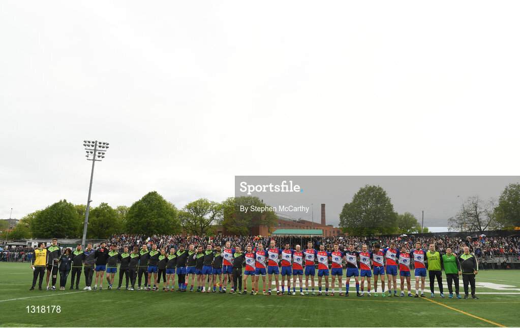 7 May 2017; The New York team during the national anthem during the Connacht GAA Football Senior Championship Preliminary Round match between New York and Sligo at Gaelic Park in the Bronx borough of New York City, USA. Photo by Stephen McCarthy/Sportsfile