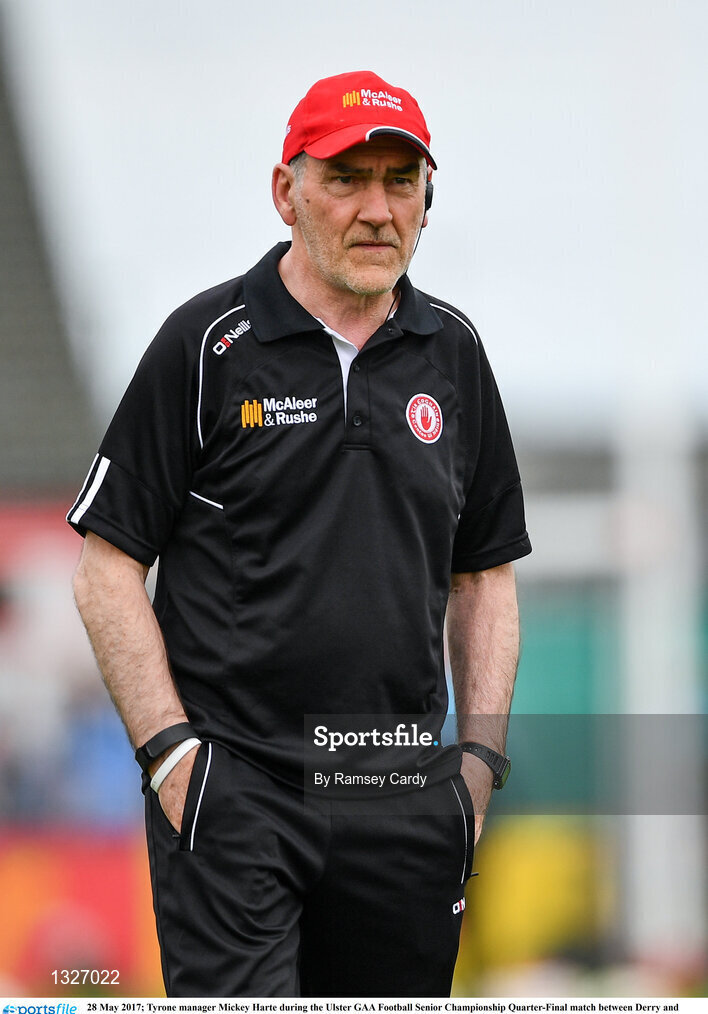 28 May 2017; Tyrone manager Mickey Harte during the Ulster GAA Football Senior Championship Quarter-Final match between Derry and Tyrone at Celtic Park in Derry. Photo by Ramsey Cardy/Sportsfile
