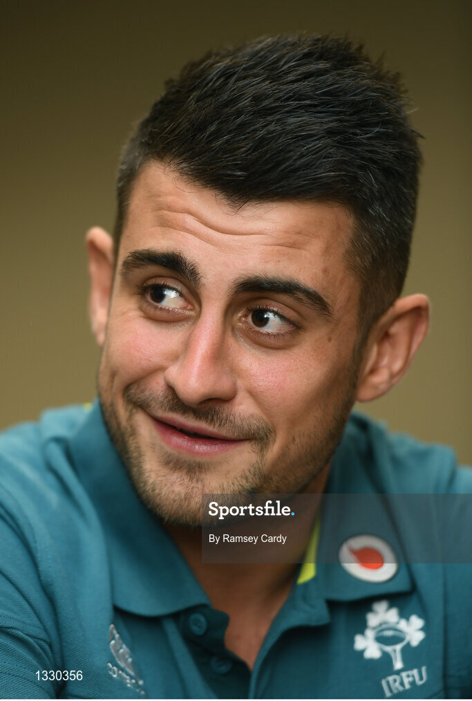 8 June 2017; Ireland's Tiernan O'Halloran during a press conference at the Hyatt Regency Hotel in Jersey City, New Jersey, USA. Photo by Ramsey Cardy/Sportsfile