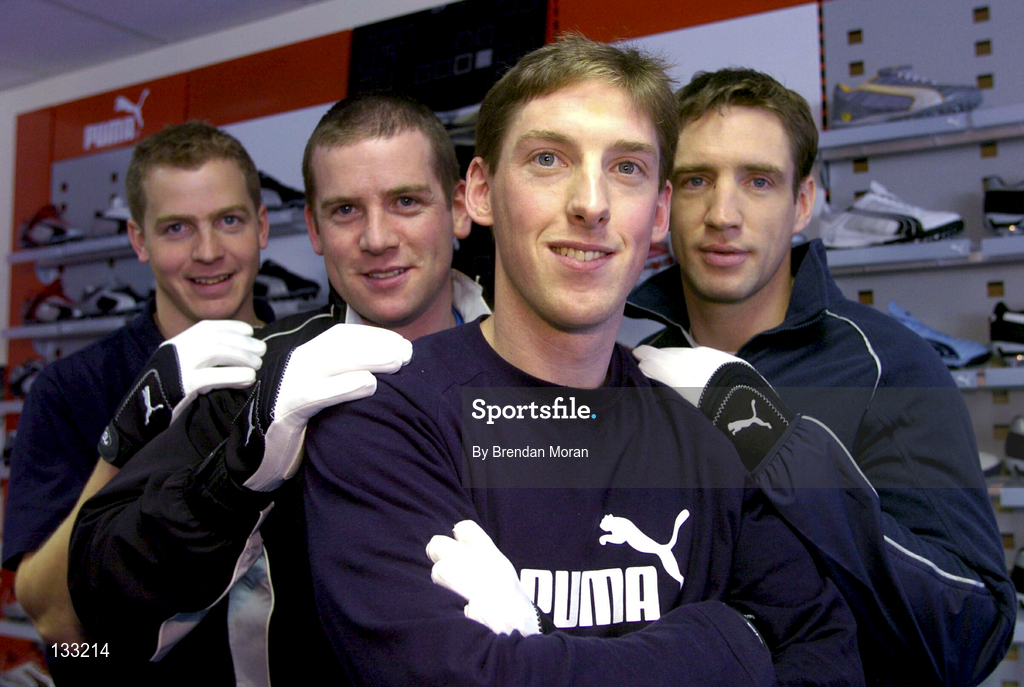 25 February 2004; Puma, the world's fastest growing sport lifestyle brand, has announced that the company, in consultation with a number of it's contracted GAA players, has designed and developed a range of innovative new Gaelic Football gloves. Pictured at the announcement are, from left, Michael Donnellan of Galway, Dara O Cinneide of Kerry, Trevor Giles of Meath and Kieran McGeeney of Armagh. Photo by Brendan Moran/Sportsfile
