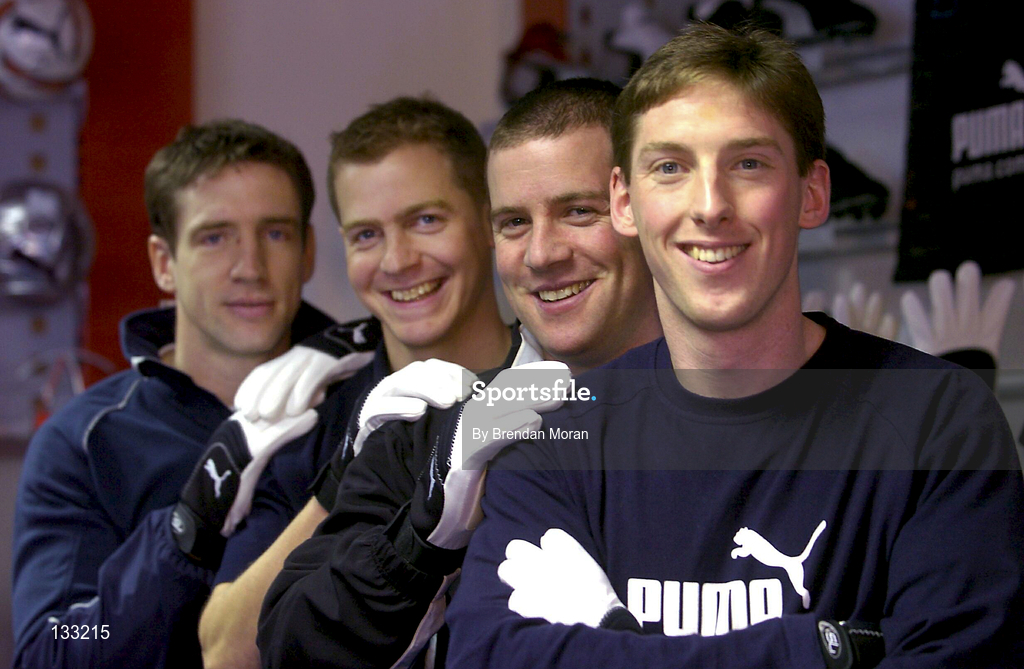 25 February 2004; Puma, the world's fastest growing sport lifestyle brand, has announced that the company, in consultation with a number of it's contracted GAA players, has designed and developed a range of innovative new Gaelic Football gloves. Pictured at the announcement are, from left, Kieran McGeeney of Armagh, Michael Donnellan of Galway, Dara O Cinneide of Kerry and Trevor Giles of Meath. Photo by Brendan Moran/Sportsfile