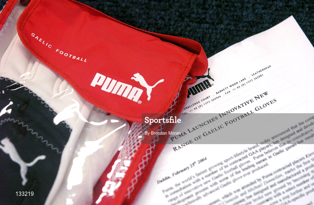 25 February 2004; Puma, the world's fastest growing sport lifestyle brand, has announced that the company, in consultation with a number of it's contracted GAA players, namely Kieran McGeeney of Armagh, Michael Donnellan of Galway, Dara O Cinneide of Kerry and Trevor Giles of Meath, has designed and developed a range of innovative new Gaelic Football gloves. Photo by Brendan Moran/Sportsfile