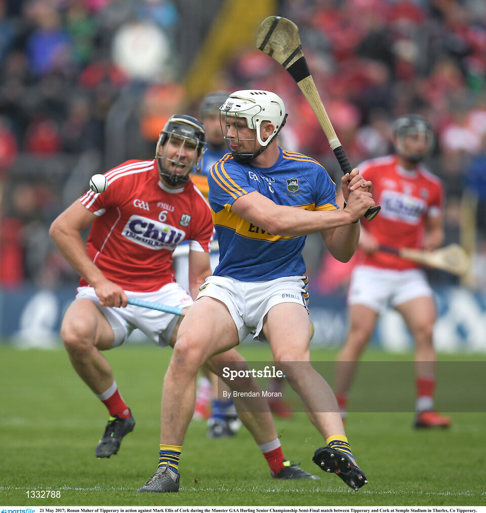 21 May 2017; Ronan Maher of Tipperary in action against Mark Ellis of Cork during the Munster GAA Hurling Senior Championship Semi-Final match between Tipperary and Cork at Semple Stadium in Thurles, Co Tipperary. Photo by Brendan Moran/Sportsfile
