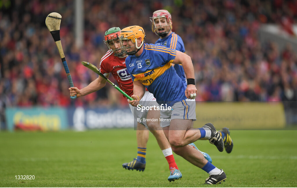21 May 2017; John O’Dwyer of Tipperary in action against Stephen McDonnell of Cork during the Munster GAA Hurling Senior Championship Semi-Final match between Tipperary and Cork at Semple Stadium in Thurles, Co Tipperary. Photo by Brendan Moran/Sportsfile