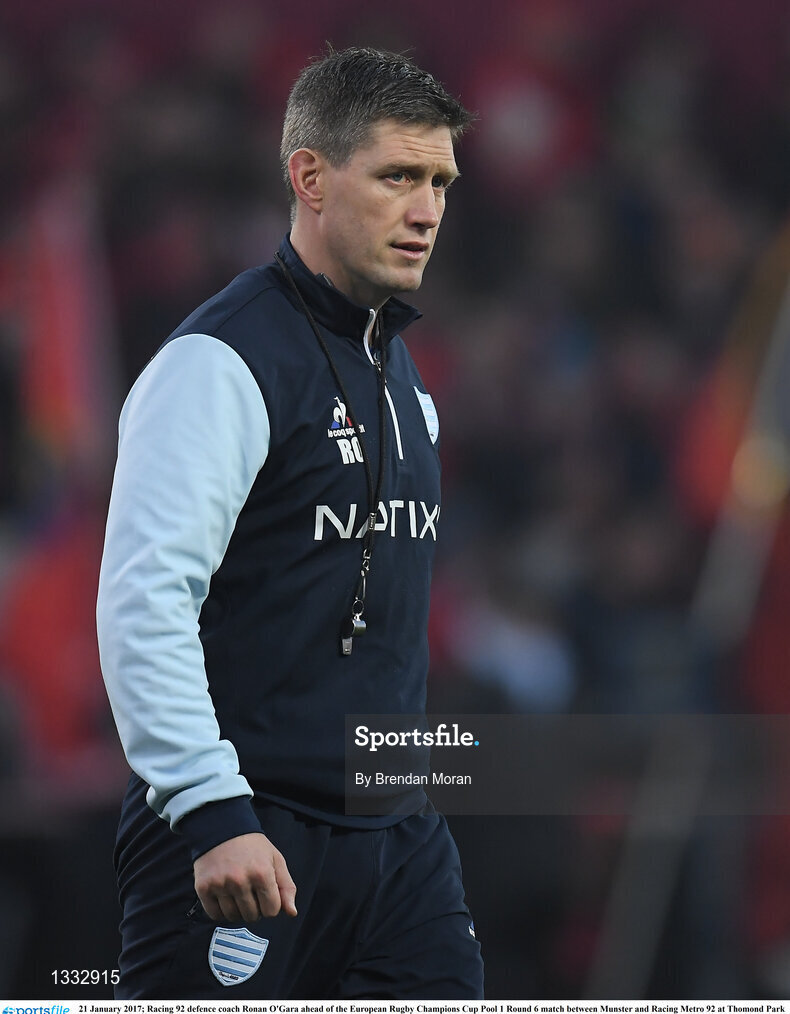 21 January 2017; Racing 92 defence coach Ronan O'Gara ahead of the European Rugby Champions Cup Pool 1 Round 6 match between Munster and Racing Metro 92 at Thomond Park in Limerick. Photo by Brendan Moran/Sportsfile