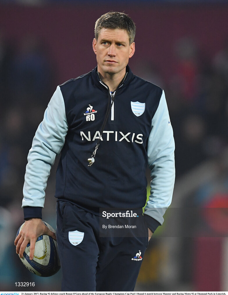 21 January 2017; Racing 92 defence coach Ronan O'Gara ahead of the European Rugby Champions Cup Pool 1 Round 6 match between Munster and Racing Metro 92 at Thomond Park in Limerick. Photo by Brendan Moran/Sportsfile