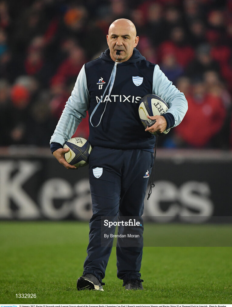 21 January 2017; Racing 92 forwards coach Laurent Travers ahead of the European Rugby Champions Cup Pool 1 Round 6 match between Munster and Racing Metro 92 at Thomond Park in Limerick. Photo by Brendan Moran/Sportsfile