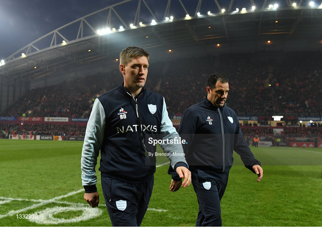 21 January 2017; Racing 92 coaches Ronan O'Gara, left, and Laurent Labit ahead of the European Rugby Champions Cup Pool 1 Round 6 match between Munster and Racing Metro 92 at Thomond Park in Limerick. Photo by Brendan Moran/Sportsfile
