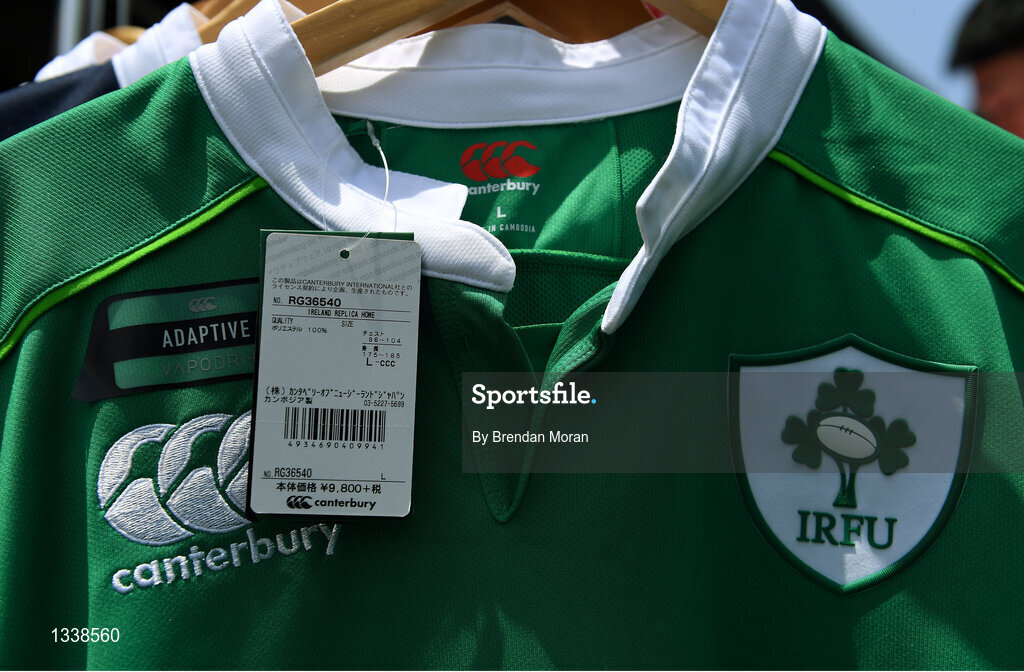 24 June 2017; A replica Ireland jersey on sale at the stadium before the international rugby match between Japan and Ireland in the Ajinomoto Stadium in Tokyo, Japan. Photo by Brendan Moran/Sportsfile