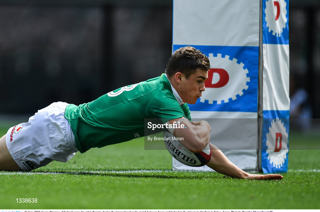 24 June 2017; Garry Ringrose of Ireland scores his side's first try during the international rugby match between Japan and Ireland in the Ajinomoto Stadium in Tokyo, Japan. Photo by Brendan Moran/Sportsfile