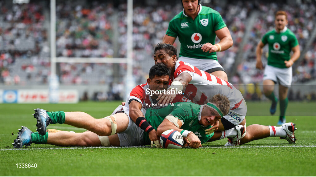24 June 2017; Josh van der Flier of Ireland scores his side's second try during the international rugby match between Japan and Ireland in the Ajinomoto Stadium in Tokyo, Japan. Photo by Brendan Moran/Sportsfile