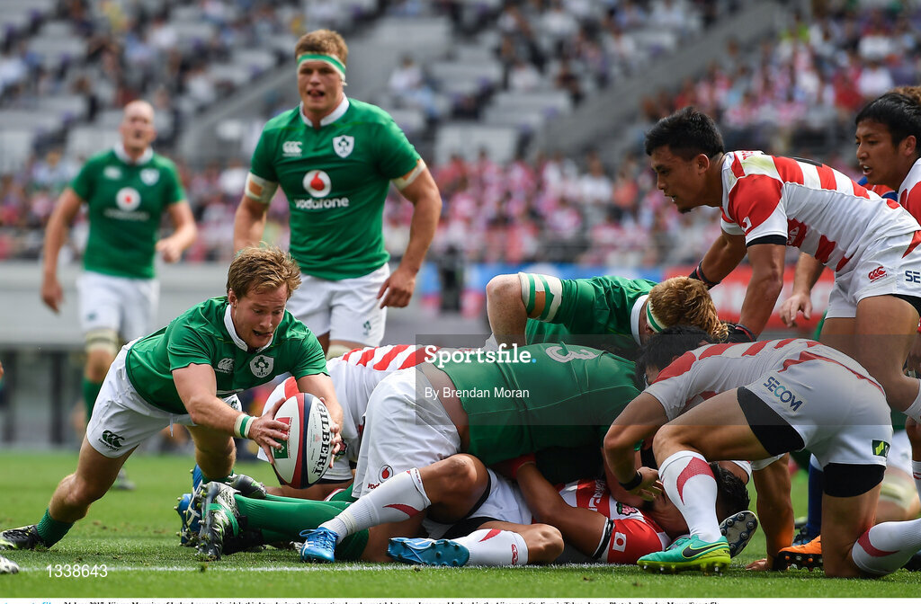 24 June 2017; Kieran Marmion of Ireland scores his side's third try during the international rugby match between Japan and Ireland in the Ajinomoto Stadium in Tokyo, Japan. Photo by Brendan Moran/Sportsfile