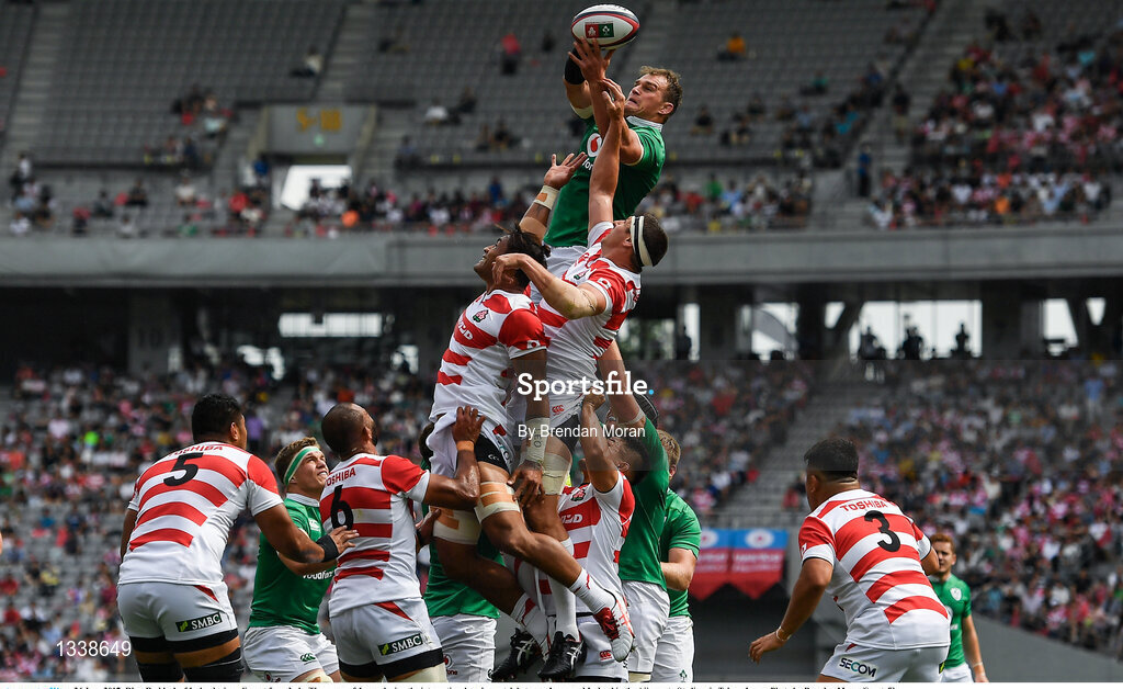 24 June 2017; Rhys Ruddock of Ireland wins a lineout from Luke Thompson of Japan during the international rugby match between Japan and Ireland in the Ajinomoto Stadium in Tokyo, Japan. Photo by Brendan Moran/Sportsfile