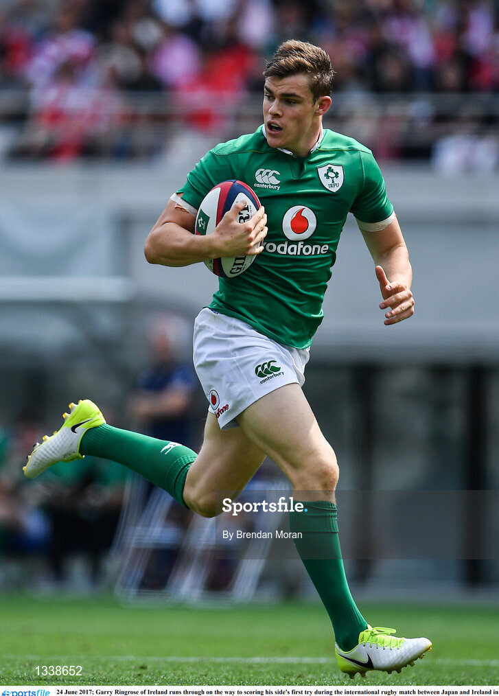 24 June 2017; Garry Ringrose of Ireland runs through on the way to scoring his side's first try during the international rugby match between Japan and Ireland in the Ajinomoto Stadium in Tokyo, Japan. Photo by Brendan Moran/Sportsfile