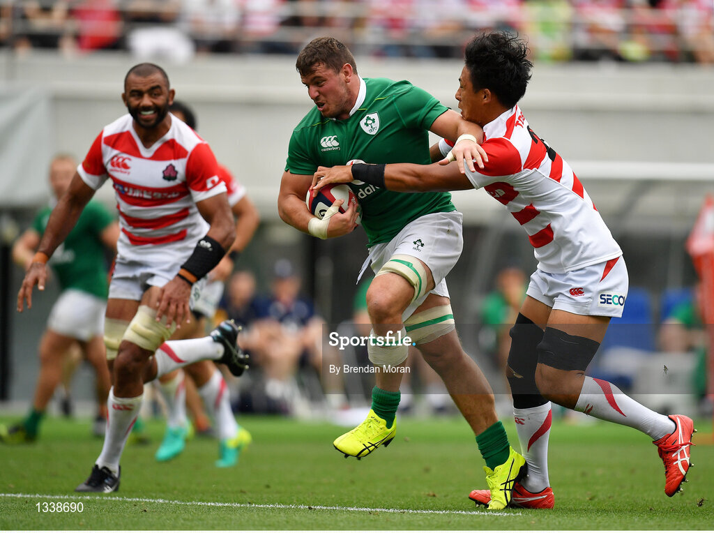 24 June 2017; Sean Reidy of Ireland holds off the tackle of Yoshitaka Tokanuga of Japan on the way to scoring his side's fifth try during the international rugby match between Japan and Ireland in the Ajinomoto Stadium in Tokyo, Japan. Photo by Brendan Moran/Sportsfile