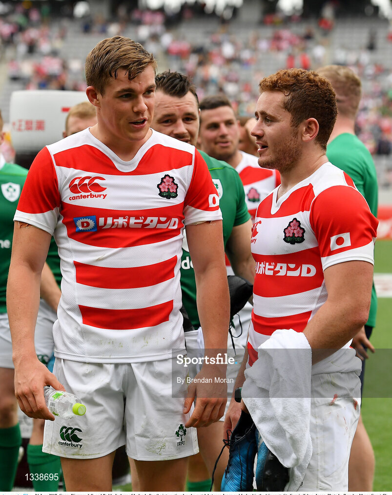 24 June 2017; Garry Ringrose, left, and Paddy Jackson of Ireland after the international rugby match between Japan and Ireland in the Ajinomoto Stadium in Tokyo, Japan. Photo by Brendan Moran/Sportsfile