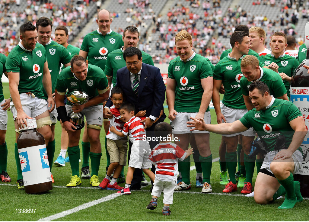 24 June 2017; The Ireland team celebrate after the international rugby match between Japan and Ireland in the Ajinomoto Stadium in Tokyo, Japan. Photo by Brendan Moran/Sportsfile