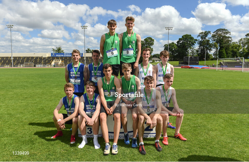 24 June 2017; The 4 x 300 metre relay podium at the Irish Life Health Tailteann School’s Interprovincial Schools Championships at Morton Stadium in Santry, Dublin. Photo by Ramsey Cardy/Sportsfile