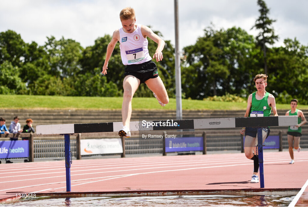 24 June 2017; Andrew Hagen of Grosvenor Grammar, Co. Antrim, competing in the 1,500m steeplechase at the Irish Life Health Tailteann School’s Interprovincial Schools Championships at Morton Stadium in Santry, Dublin. Photo by Ramsey Cardy/Sportsfile
