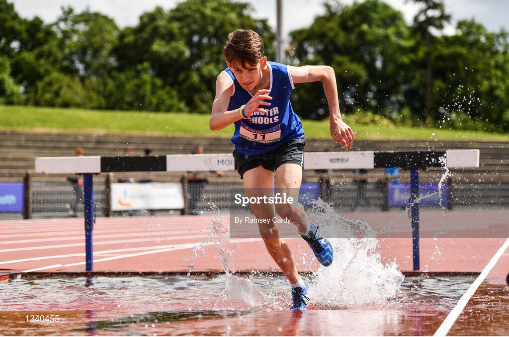 24 June 2017; Oisin Spillane of Mercy Mount Hawk, Tralee, Co. Kerry, competing in the 1,500m steeplechase at the Irish Life Health Tailteann School’s Interprovincial Schools Championships at Morton Stadium in Santry, Dublin. Photo by Ramsey Cardy/Sportsfile
