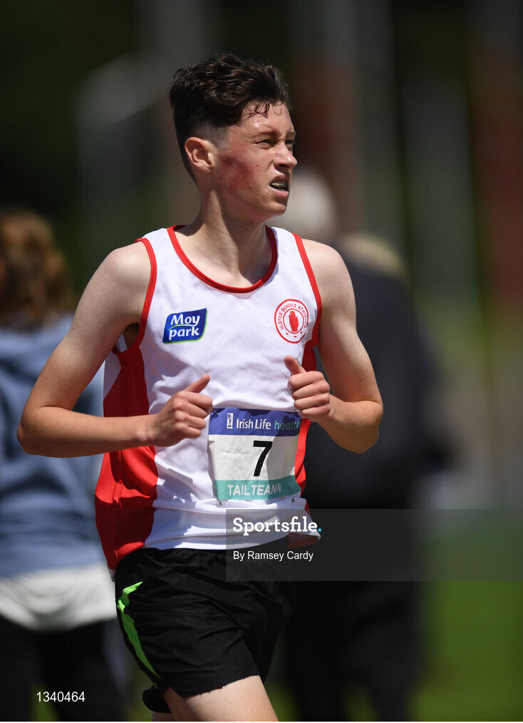 24 June 2017; Conall Browne of St Malachys Belfast, Co. Antrim, competing in the 3,000 metre race at the Irish Life Health Tailteann School’s Interprovincial Schools Championships at Morton Stadium in Santry, Dublin. Photo by Ramsey Cardy/Sportsfile