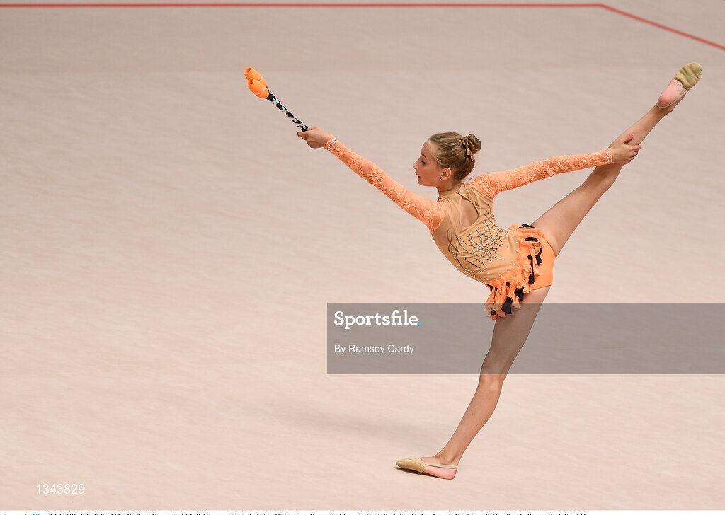 2 July 2017; Nelia Kelly of Elite Rhythmic Gymnastics Club, recently selected for the European Youth Olympics, competing at the Gymnastics Ireland National Series Super Championships where nearly 500 gymnasts from all ages and disciplines competed at this flagship event. The National Indoor Arena in Abbotstown, Dublin. Photo by Ramsey Cardy/Sportsfile