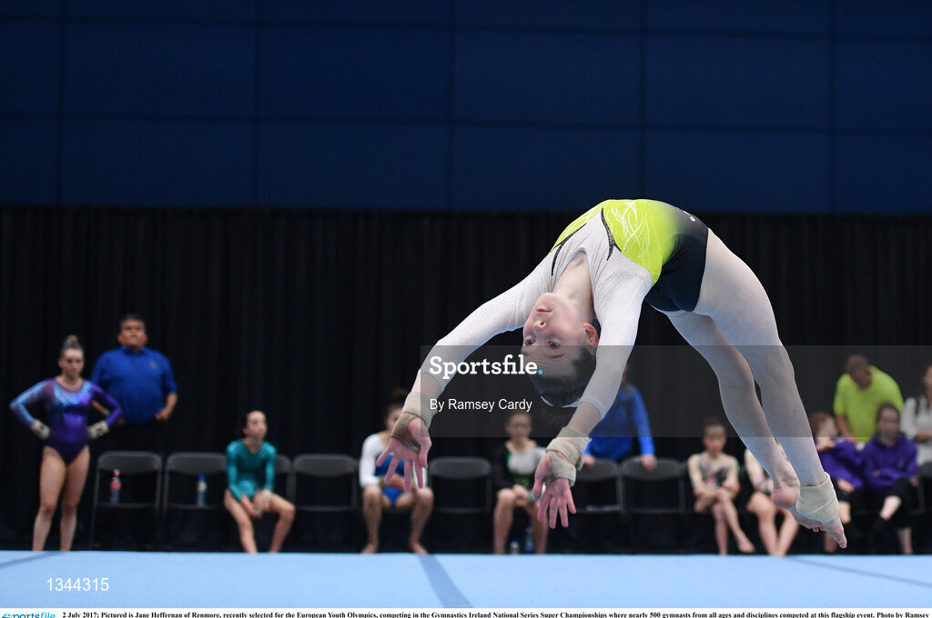 2 July 2017; Pictured is Jane Heffernan of Renmore, recently selected for the European Youth Olympics, competing in the Gymnastics Ireland National Series Super Championships where nearly 500 gymnasts from all ages and disciplines competed at this flagship event. Photo by Ramsey Cardy/Sportsfile