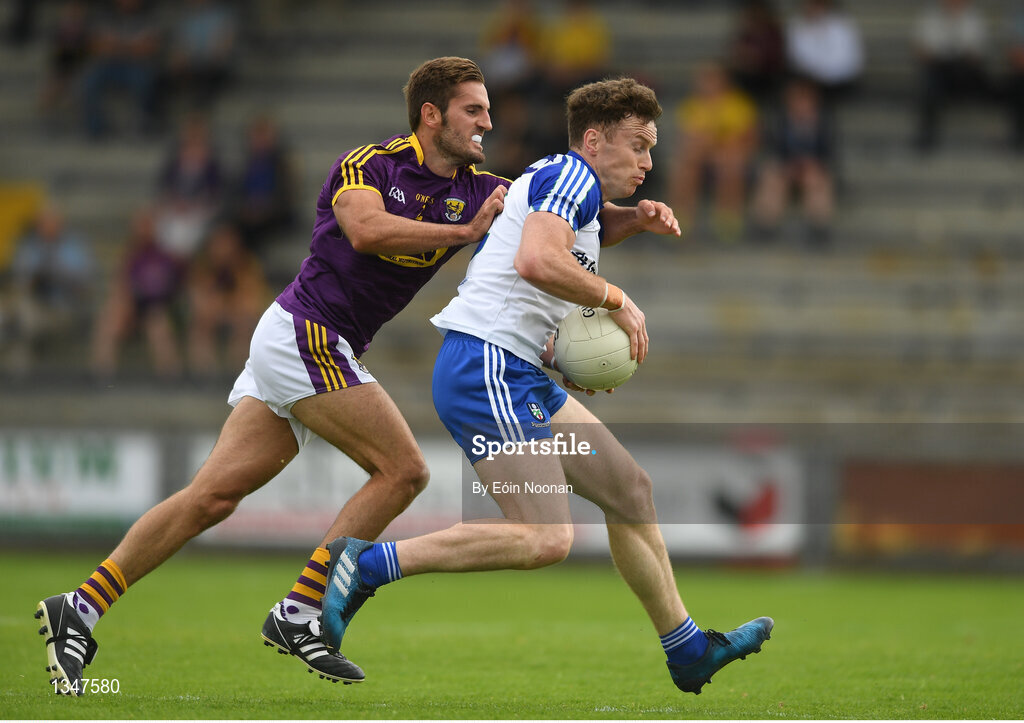 8 July 2017; Fintan Kelly of Monaghan in action against Brian Malone of Wexford during the GAA Football All-Ireland Senior Championship Round 2B match between Wexford and Monaghan at Innovate Wexford Park in Co Wexford. Photo by Eóin Noonan/Sportsfile
