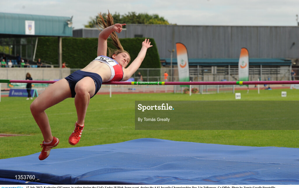 16 July 2017; Katherine O'Connor, in action during the Girl's Under 18 High Jump event, during the AAI Juvenile Championships Day 3 in Tullamore, Co Offaly. Photo by Tomás Greally/Sportsfile