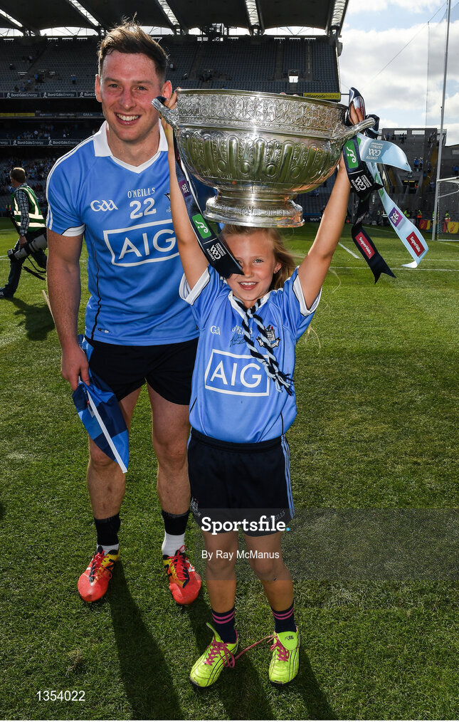 16 July 2017; Philip McMahon of Dublin and Kyah O'Reilly, eight years, after the Leinster GAA Football Senior Championship Final match between Dublin and Kildare at Croke Park in Dublin. Photo by Ray McManus/Sportsfile
