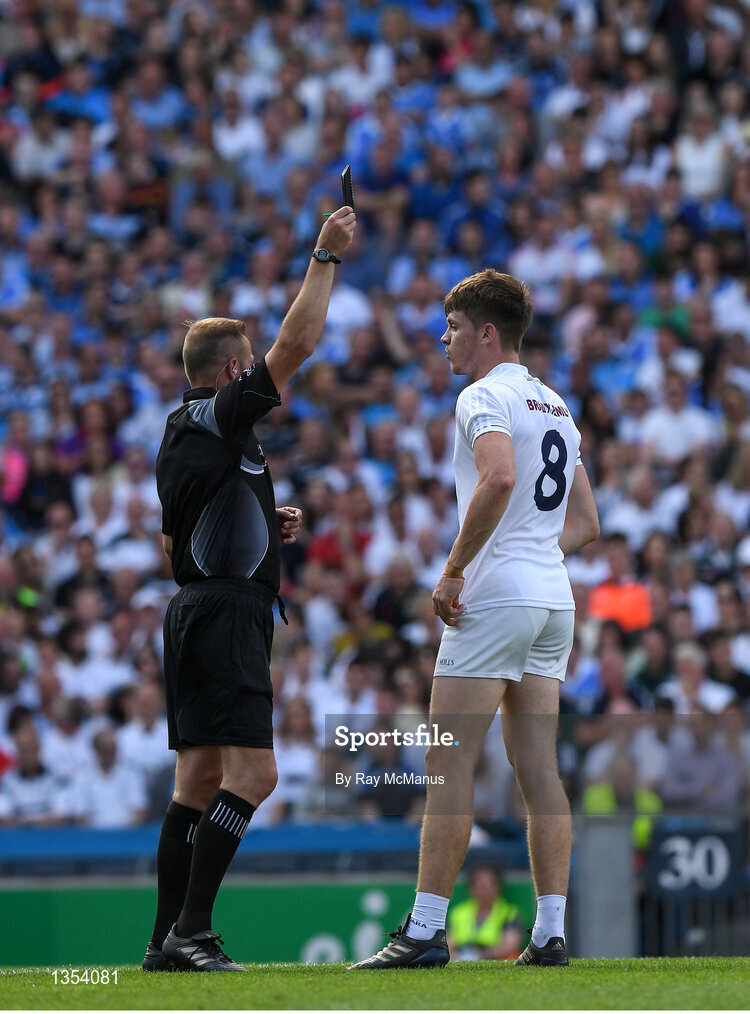 16 July 2017; Kevin Feely of Kildare receives a black card from referee Anthony Nolan during the Leinster GAA Football Senior Championship Final match between Dublin and Kildare at Croke Park in Dublin. Photo by Ray McManus/Sportsfile