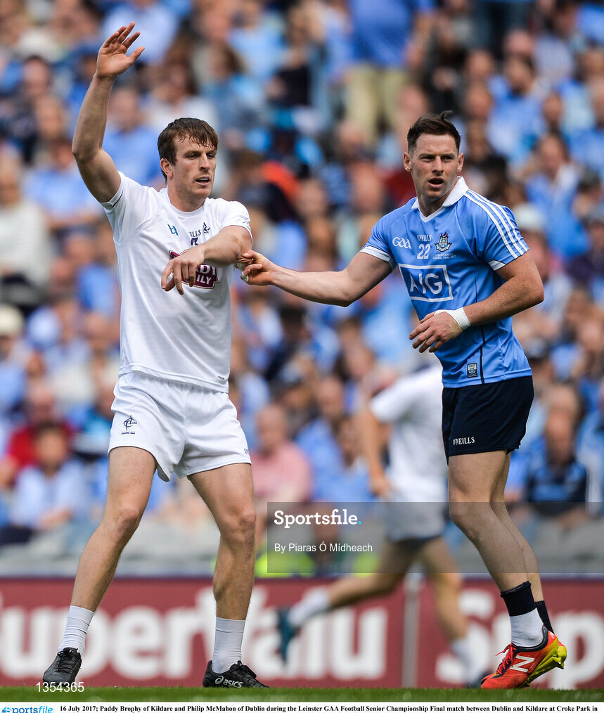 16 July 2017; Paddy Brophy of Kildare and Philip McMahon of Dublin during the Leinster GAA Football Senior Championship Final match between Dublin and Kildare at Croke Park in Dublin. Photo by Piaras Ó Mídheach/Sportsfile